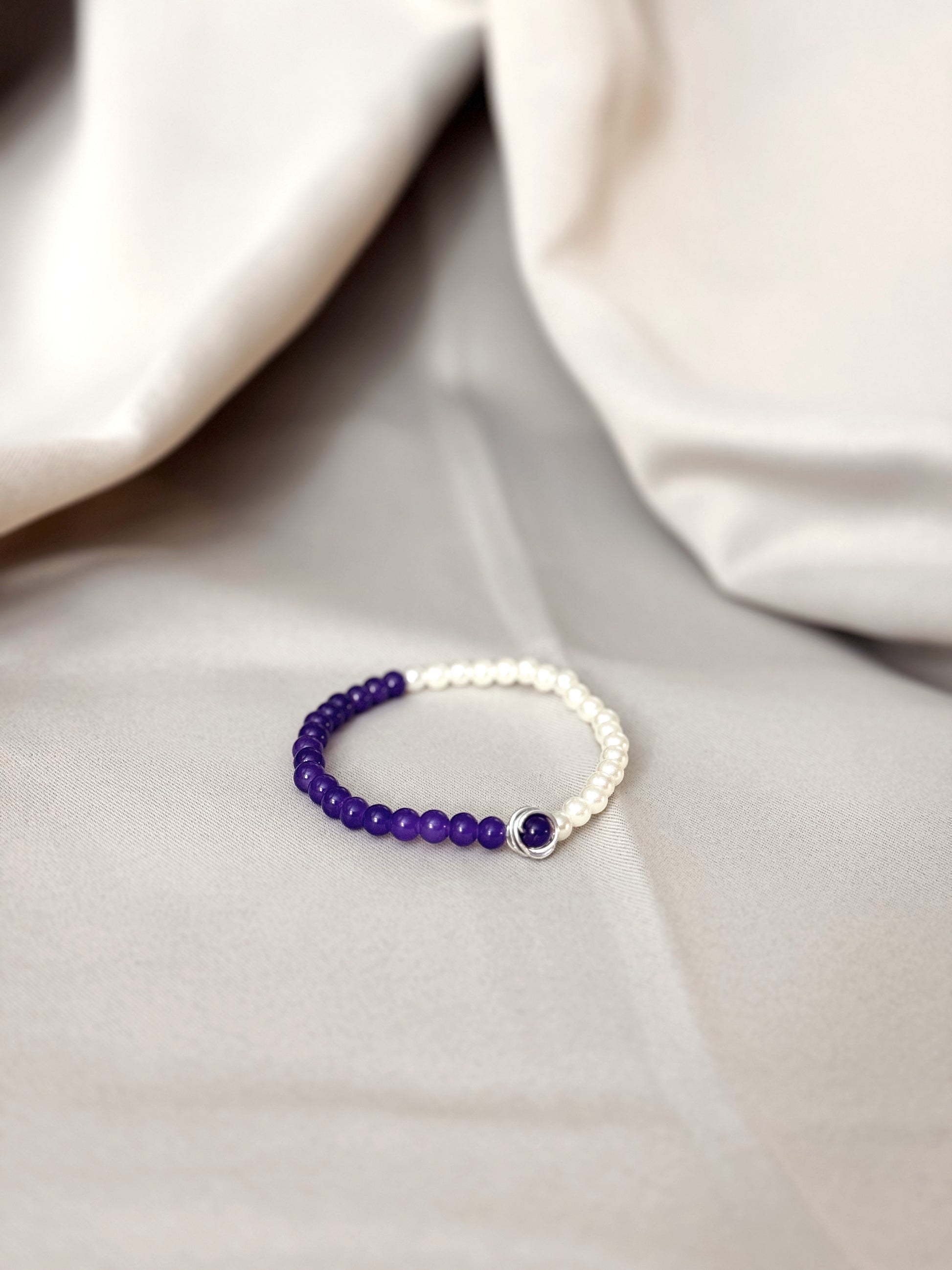 Bring a touch of calm and elegance to your wrist with this stunning handmade Amethyst and Pearl Beaded Bracelet. Featuring a balanced half-and-half design, this bracelet combines the spiritual strength of amethyst with the timeless beauty of freshwater pearls. At the center sits a bezel-set amethyst stone, adding a modern and sophisticated finish.