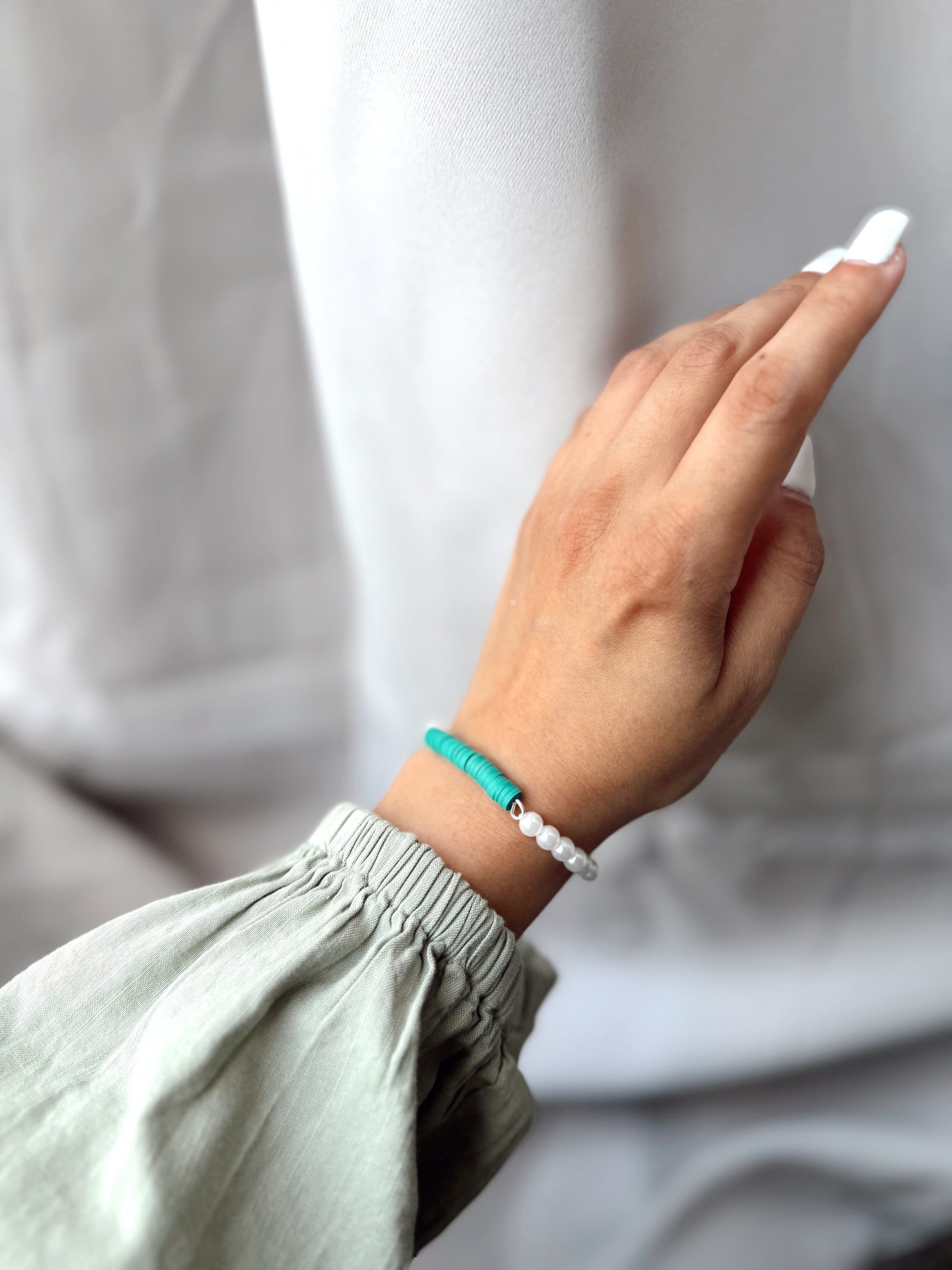 Pearl bracelet turquoise centrepiece beads, Chic Gift for her, Delicate Birthday Gift,Summer beachy everyday bracelet, Boho style jewelry
