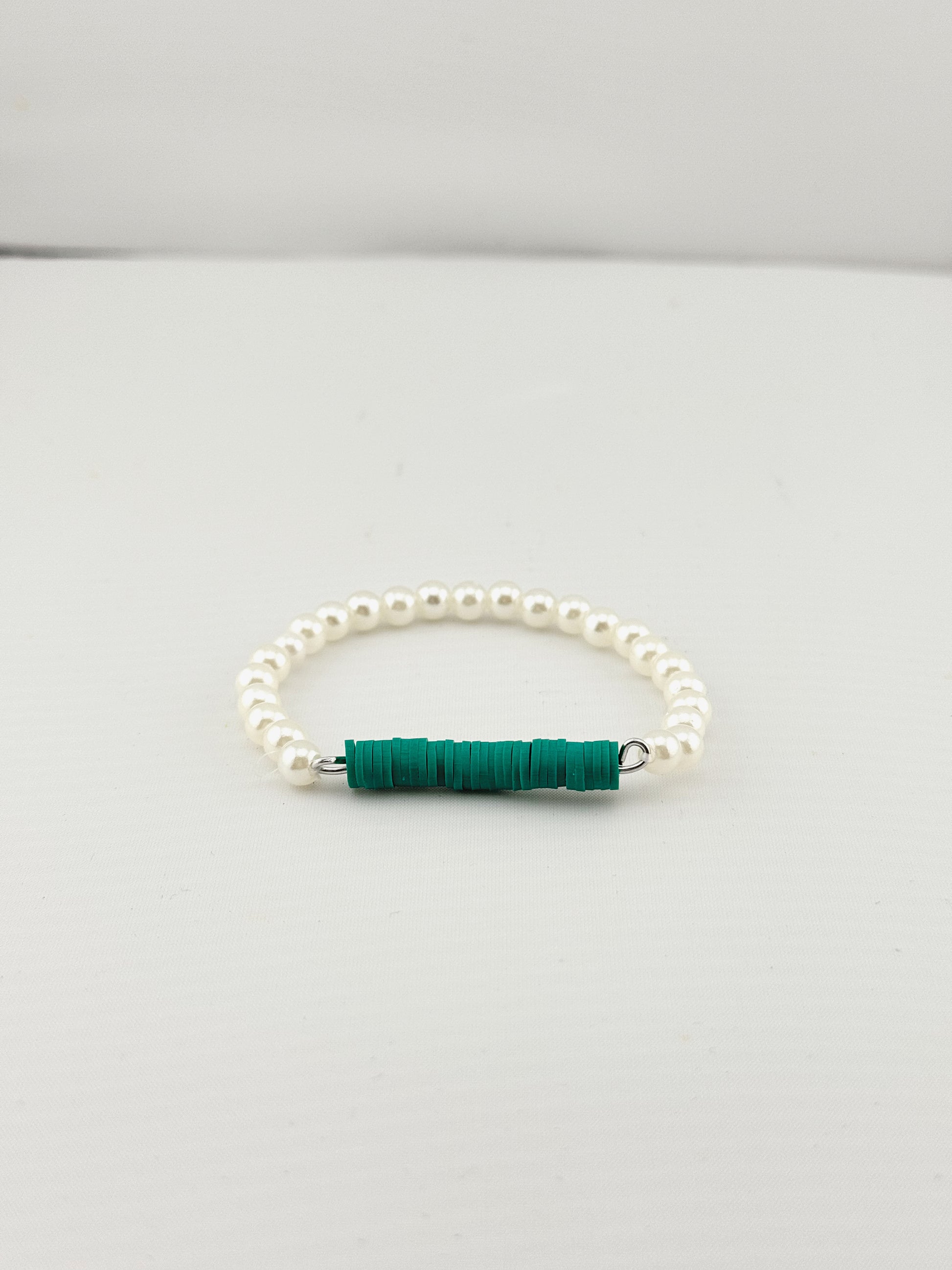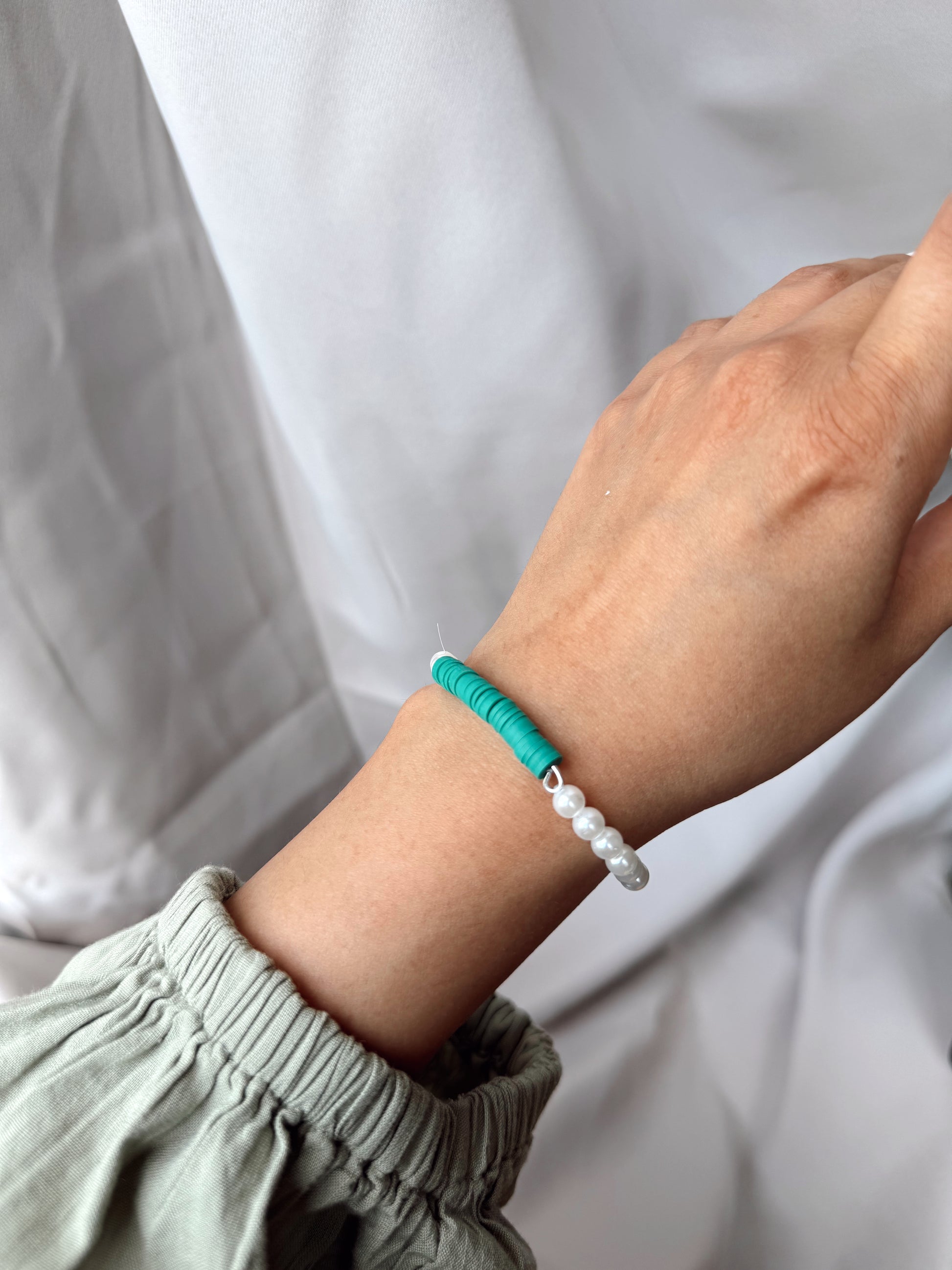 Timeless,Boho and just made for you - this beachy bracelet features glossy white glass pearls and turquoise centerpiece beaded charm.Strung on a strong strech cord for a comfortable and easy fit, this bracelet is perfect for daily wear especially at the beach/pool or just perfect gift.